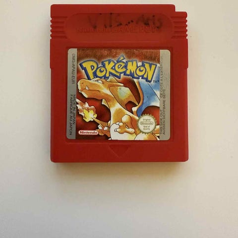 Nintendo Pokémon Game Cartridge Red for Nintendo 8-bit system. The cartridge is red in color and compatible with the Nintendo 8-bit gaming console.