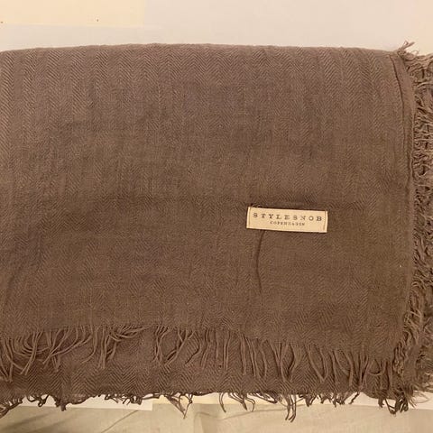 Stylesnob bordeaux halstørklæde. Det er strikket i et ribmønster med frynser og i ret tyk kvalitet. Ca. 200x70 cm. Brugt få gange.