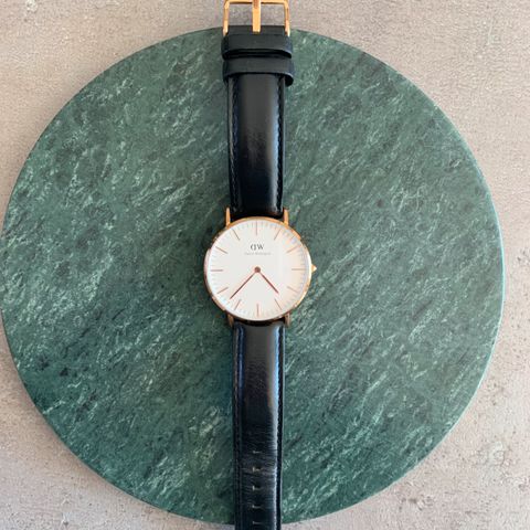 Daniel Wellington unisex armbåndsur med en rund hvid urskive og brun læderrem 36mm. Uret har minimalistisk design med sølvfarvede visere og markeringer. Remmen er lavet af læder, og uret leveres i original æske.