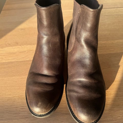 ECCO støvler i størrelse 41, lavet af brunt læder. Støvlerne har en lynlås på siden og en blokhæl. Designet til almindelig brug og passer til forskellige outfits.