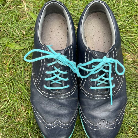 Herre golfsko uden spikes i super lækker kvalitet. De er sparsomt brugt i marineblå læder og vandtætte.