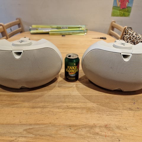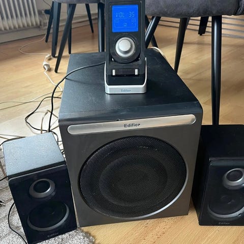 Små højttalere i meget fin stand til fx. en PC, inklusive alle kabler og strømforsyning. God lyd.