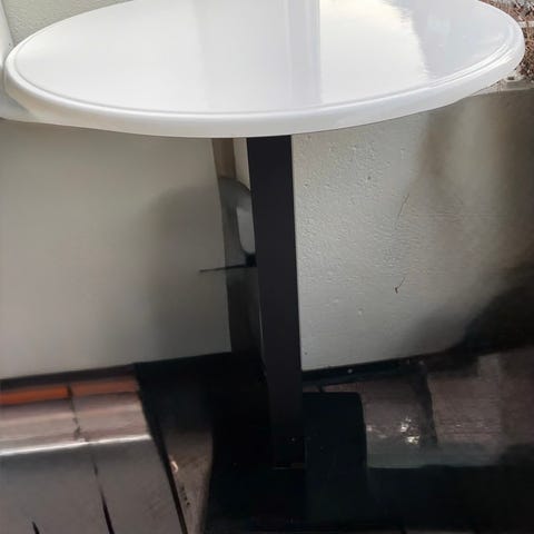 Cafebord med sortlakeret stålstel. Står meget solidt.