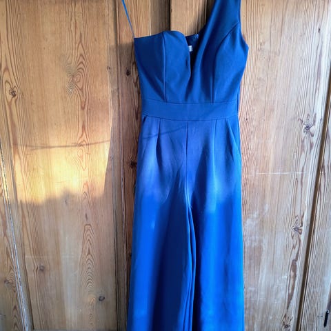 Flot buksedragt fra i marineblå. Super pasform med stivere over bryst stykket så den sidder flot. Brede stroppe, lommer og 2 læg foran. Smalle i buksebenene. Super flot på.