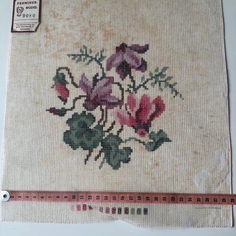 Påmalet stramaj. Se billeder for mål. 30kr. Pr. Stk. Garn medfølger ikke. OBS Stramajen er misfarvet, men det er ikke noget, der ses, når der er syet ovenpå.