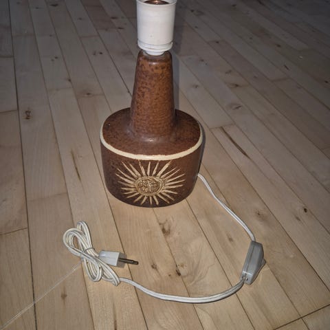 Sælger denne skønne Model 3001 fra Søholm Stentøj, Bornholm, højde 32cm til top af fatningen, helt uden fejl med org. el, fatning m/ tænd/sluk. m/skærmholder, lampen er fra 1970’erne.