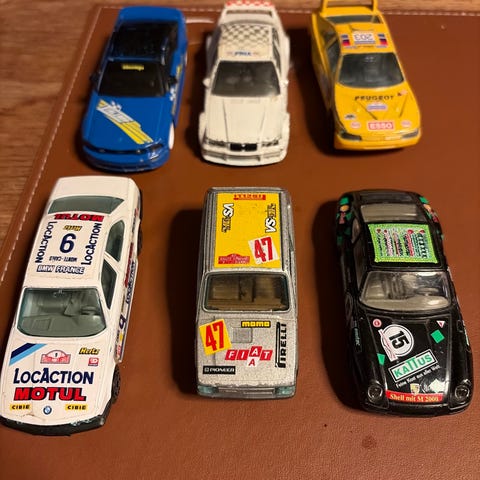 Modellerne omfatter bl.a. Corvette, Audi R8, Ford Mustang, Porsche 911 og Subaru Impreza