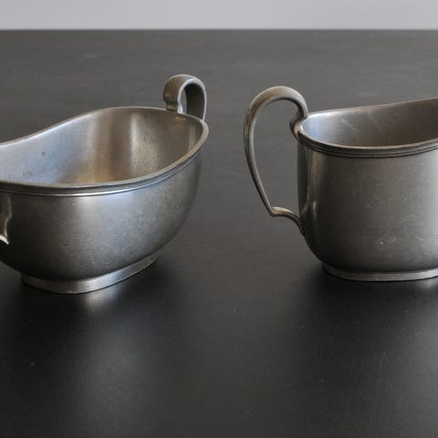 TV: Fløde/sukker-sæt, mat tin/cirkler ved bund, Just Andersen/1939, mrkt. 2158 - 85 kr