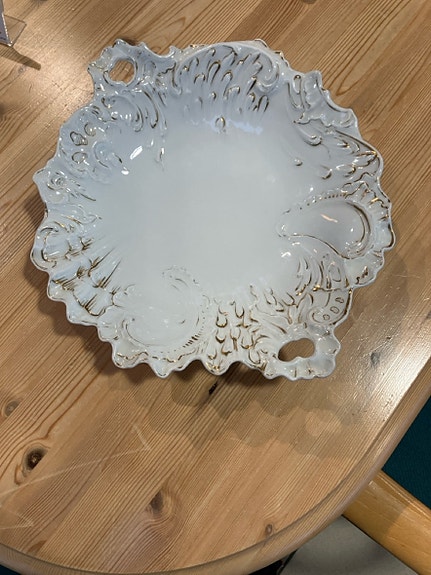 Vasen er af keramik med en glat, hvid overflade og en blå mønstret top.,Afhentes i:,Røde Kors Sorø (335),Bemærk at mail, chat og beskeder ikke besvares, og varen skal købes på knappen "Gå til varen"