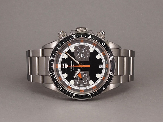 Et sjældent eksemplar i New Old Stock-stand, der aldrig har været brugt. Modellen fremstår fuldstændig original med gul skive, gule subdials og karakteristiske sporty detaljer. Kassen måler 39 mm og er udført i rustfrit stål, beskyttet af safirglas.