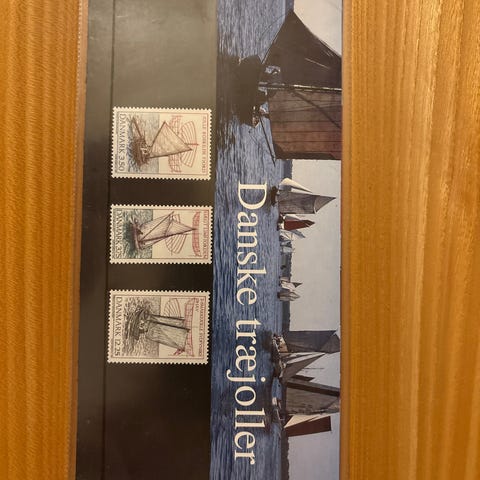 Danske træjoller. Rød streg over S i SJÆGT og grønne streger ved D i DANMARK. Nr 46, 47, 48, 49 og 50 i arket i en del af oplaget.