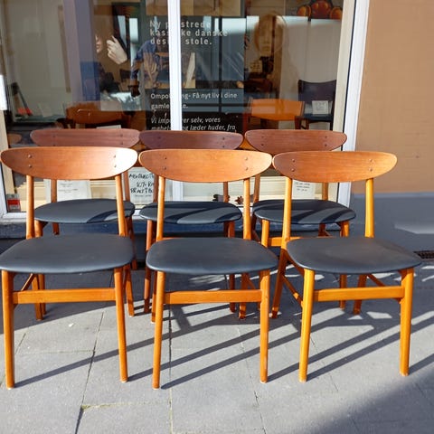 Ny polstret Farstrup spisebordsstole i teaktræ, betrukket med italiensk læder