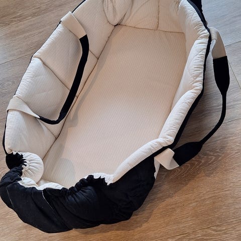 Materialerne er 100% økologiske med vandafvisende bomuld, allergivenligt skum og blød bomuldspoplin. Liften kan omdannes til en legemåtte og passer til de fleste barnevogne. Den er testet efter sikkerhedsstandarden EN 1466 og certificeret som sikker for nyfødte.