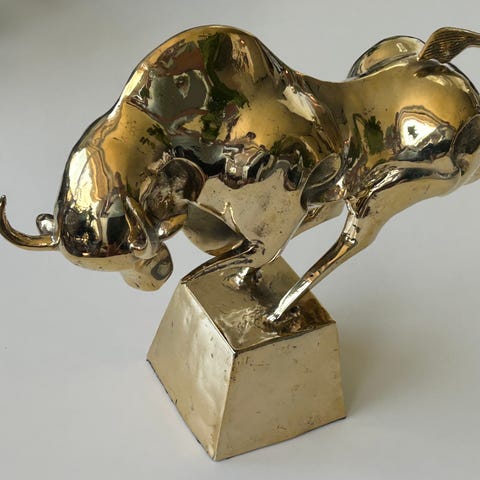 bronze tyr, tyreskulptur, moderne skulptur, guld figur, tyrestatue, dekorativ bronze, vintage bull statue, moderne kunst, guldskulptur, eksklusiv pynt, maskulin indretning, symbol på styrke