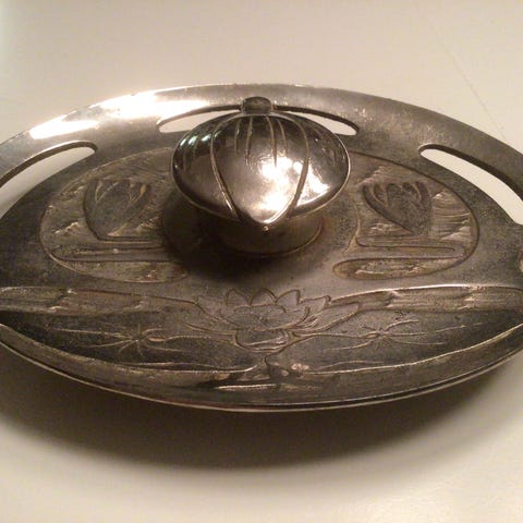 Smukt gammelt blækhus i turkis. Måler 15 x 15.