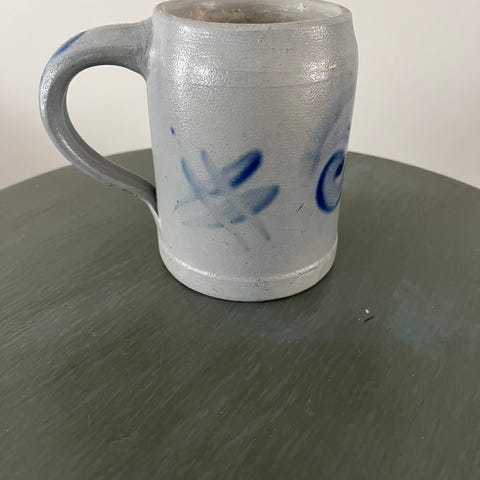 2 små syltekrukker. Den ene helt intakt, den anden har et lille bitte skår, se sidste foto. Sælges samlet for 95 kr i Hillerød. Kan sendes. Højde ca. 8,5 cm og bredde ca. 11 cm plus hanke