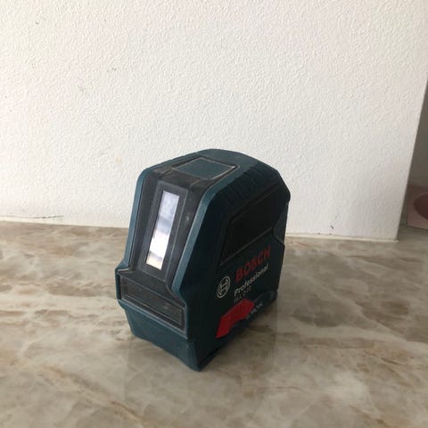 Bosch GLM 50 Professional laserafstandsmåler med digitalt display. Enheden bruges til præcise afstandsmålinger og har brugervenlige betjeningsknapper. Inkluderer et beskyttende bæretui til opbevaring og transport.