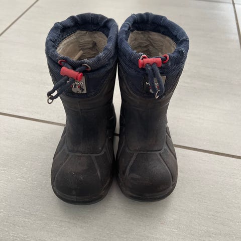 Viking børnestøvler i størrelse 29 til unisex. Støvlerne er sorte med hvid sål og har to velcrolukninger for nem tilpasning. Designet til at give god støtte og komfort til børn.