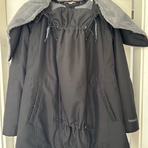 Varm dejlig Bærejakke. Med blødt foer. Kan bæres både med front og ryg.den kan bruges både som gravid , med barn pg uden barn da det ekstra stykke lynes af eller på.
