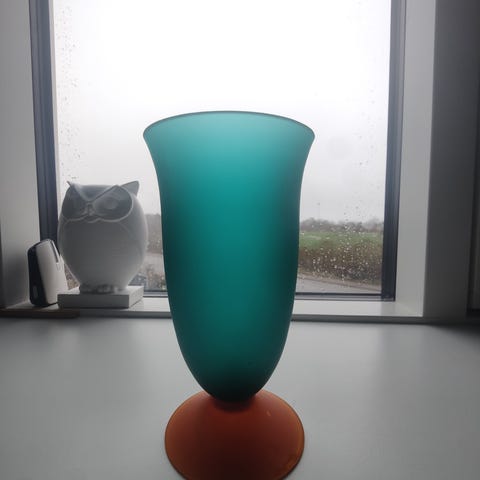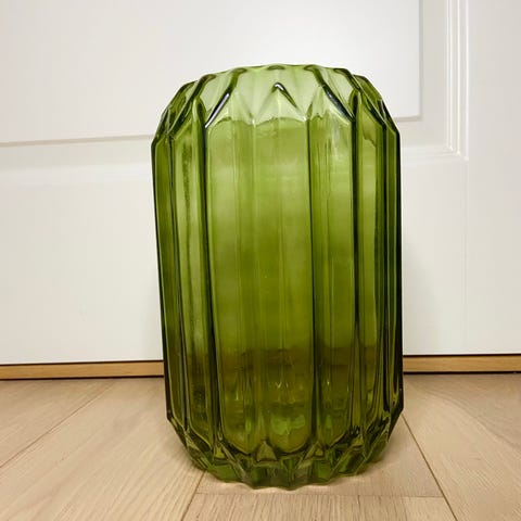 Iittala glasvase i grøn farve med kvadratisk form. Fremstillet af klart og farvet glas. Velegnet til dekoration og som fyrfadsstager.