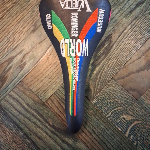 En smuk Vuelta italy Vision cykelsadel i sort farve. Sadelens overflade har et tekstureret mønster for forbedret greb. Designet til brug på racer cykler, en virkelig smuk retro sadel, helt ny og ubrugt. (Nos)