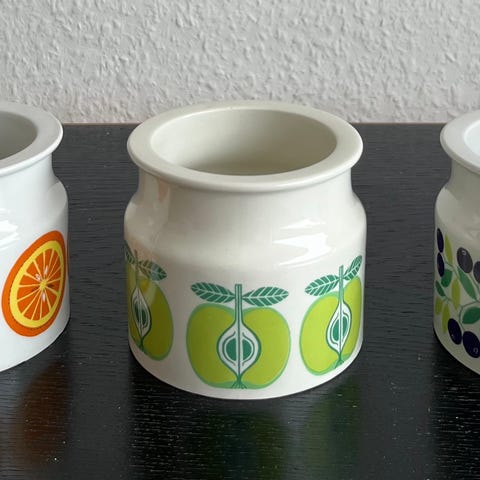 Arabia Pomona krukke med blommer. Ingen skår, brugsspor eller krakeleringer.