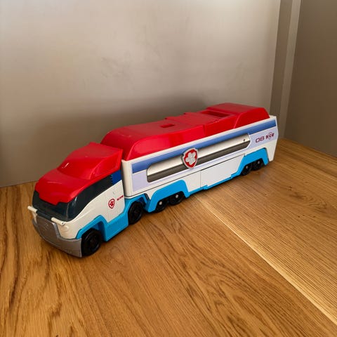 Fin brugt Paw Patrol lastbil m. aftageligt overdækning. Forskellige lyde ved tryk på knap. Bruger AA batterier.