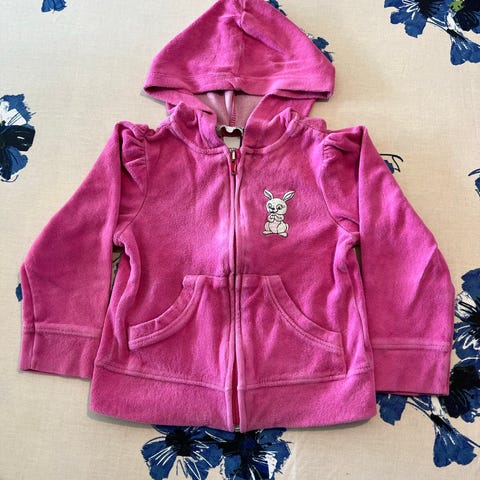Hættetrøje H&M str. 110-116. 80% bomuld, 20% polyester. Den har mistet farve i kanterne. Ann. nr. S1556