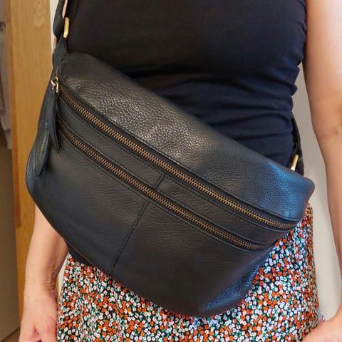 Helt ny i sort med skulderrem og mange rum i tasken. Nøgle medfølger til låsen.