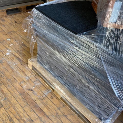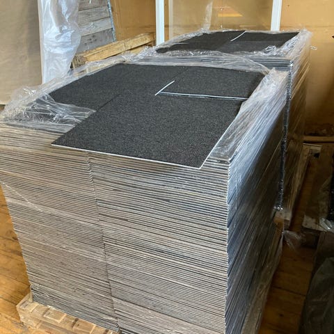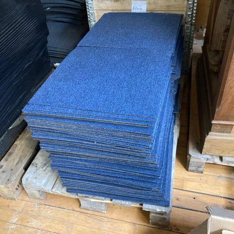 Tæppefliser 500x500mm Sort/antracit i 6 mm tykkelse. Brugte tæppefliser, der ser ud som nye. Fliserne sælges pr m² á 4 fliser. Pris pr m² 75,00kr inkl. moms.