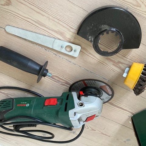 Bosch vinkelskærer Angle Grinder 220V 0 601 333 203 Stor professionel maskine med skærerland til skæring af store fliser med mere, pæn og meget lidt brugt virker 100%, Skærerskive 280Ø sælges kr. 1000