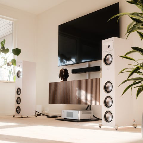 Hver højttaler består af et meget stort elektrostatelement samt en 12" basenhed.
