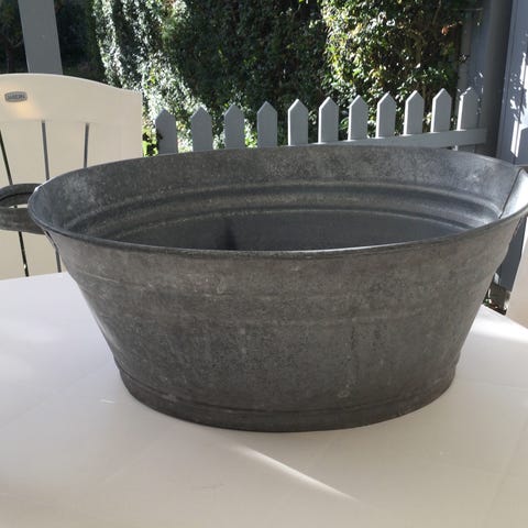 zinkbalje, vintage balje, gammel zink, patina, landstil, havepynt, blomsterbalje, fodbad, zink skål, DIY projekt, retro indretning, gammel balje, zinkkurv, planteopsats, shabby chic, fransk landstil, gammel havepynt