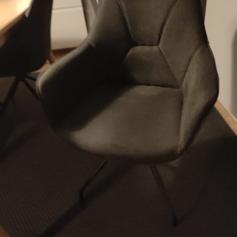 4 stk velholdte og rigtig pæne stole fra LEXPO, med kraftigt antracit gråt møbelstof. Stellet er et sort metal, som kan dreje 180°
