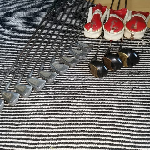 - Sættet er komplet og består af 3-SW-jern, hickory-putter, driver, 3-kølle og 5-kølle.