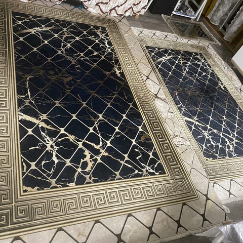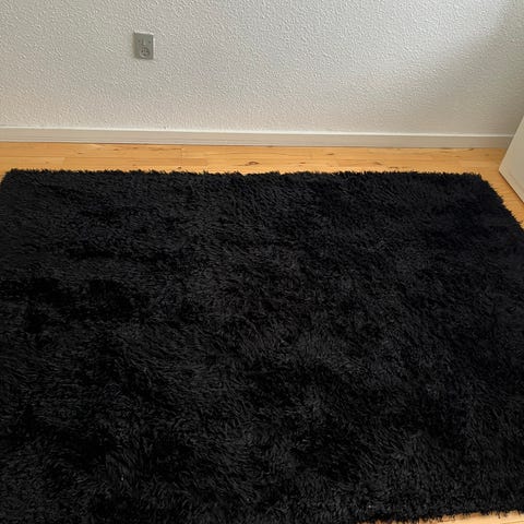 Blødt tæppe i grå med mørkegråt diamantmønster.