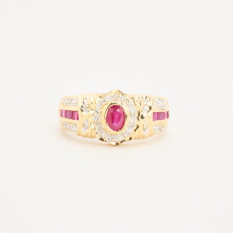 Gypsy ring i 14K guld med en diamant (0.56 ct) og seks