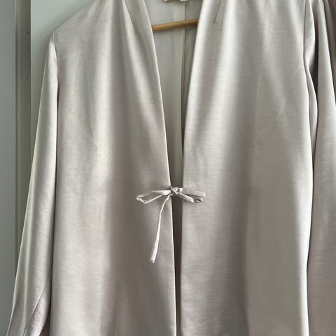 Flot uld blanding jakke fra Karmamia, onesize, passer til de fleste efter min mening. 3/4 armslængde, længden ca.100cm