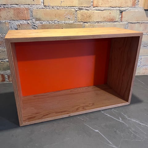 Pæn bogkasse med kun få og minimale brugsspor. Har en rids på ydersiden på den ene korte side - se sidste billede.