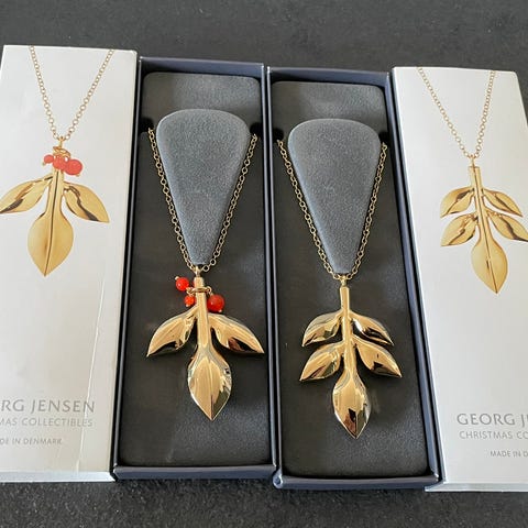 Georg Jensen ornament 2016 med motiv af magnoliablad, udført i messing belagt med palladium. Designet af Helena Rohner.