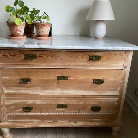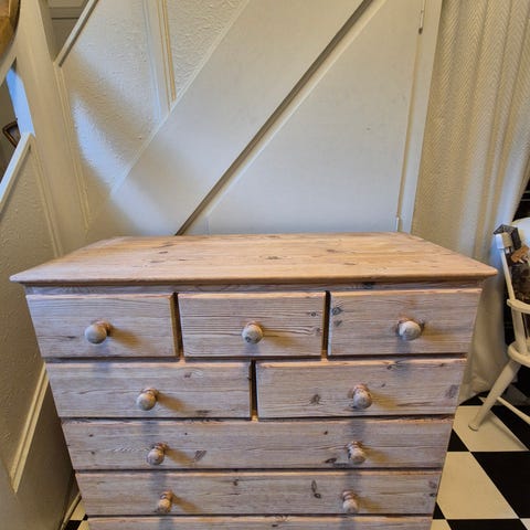 kommode fyrretræ spejl retro vintage skuffer møbel soveværelse entré sommmerhus