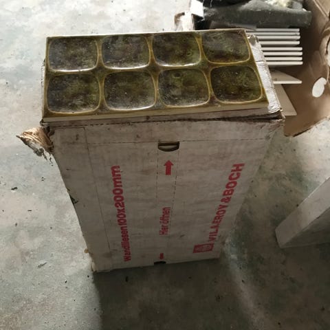 Billederne viser fliserne i dagslys og når når det bliver sat op mod andre fliser derfor de ser forskellige ud i farven. Flisen er lys grå.