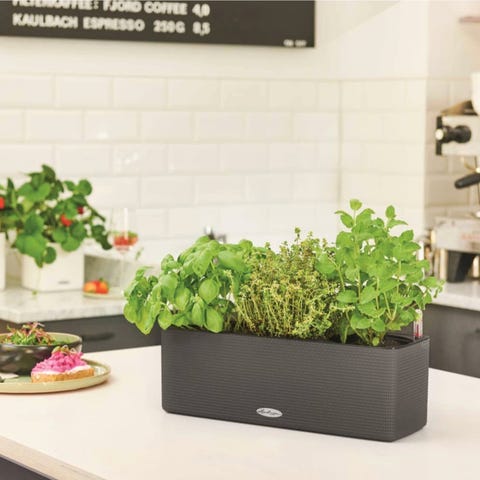 Lechuza plantekasser i hvid plast. Velegnet til indendørs brug. Firkantet design med drænhul og vandreservoir. Passer til forskellige typer af planter og giver en moderne æstetik.