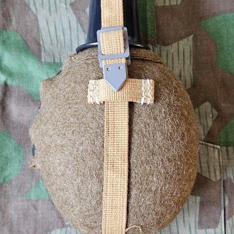Reproduktion af overtræk og remme til tysk 1L feltflaske fra den anden verdenskrig.