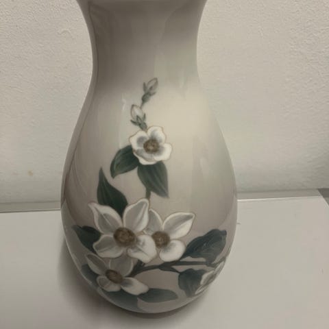 Bing & Grøndahl Vase med Blomstermotiv Hvid
