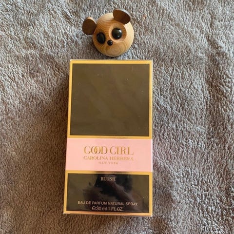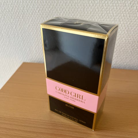 Ny Carolina Herrera Good Girl Blush Eau de Parfum i en 30 ml flaske. Duftens emballage er sort og lyserød med gulddetaljer. Produktet er en naturlig spray.