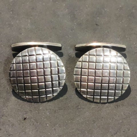 Elegante manchetknapper i sølv 830S med et stilfuldt design. Perfekt til at tilføje et sofistikeret touch til ethvert outfit. Er blevet brugt i anledning af et 8 års jubilæum. Stemplet Denmark 925S HaH. Designeren hedder Hans Hansen fra Kolding og startede i 1947. Manchetknapperne måler 19 x 19 mm og 3 mm tykke og vejer 30 gram. Det er ikke nogle man ser mange af, fremstår med almindelig brugs spor.