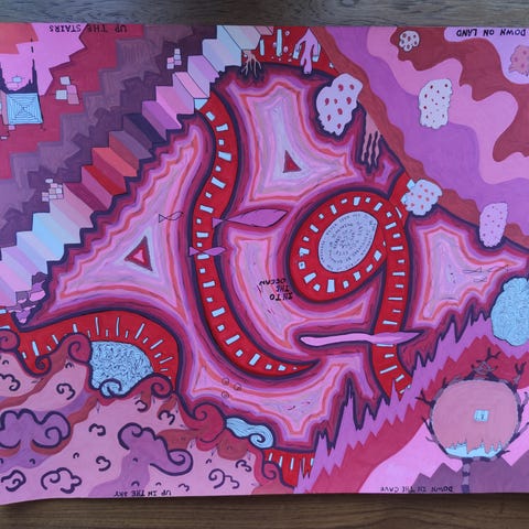 Akvarel og blæk på lærred