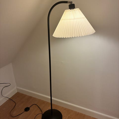 Flot standerlampe med arm som kan svinge ud. Ny flot skærm.