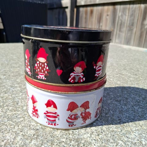 3 flotte retro jule dåser fra Daells Varehus. De er i rigtig fin stand og kan bruges. Ingen rust.